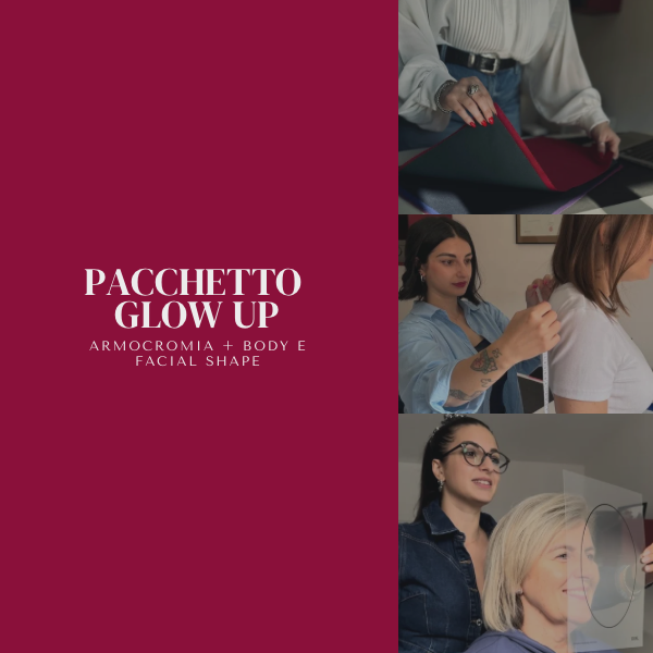Il pacchetto GLOW UP è la combo di 3 consulenze: ARMOCROMIA, BODY SHAPE E FACIAL SHAPE.