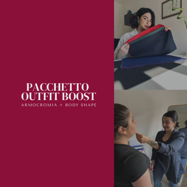 Il pacchetto OUTFIT BOOST è la combo di 2 consulenze: ARMOCROMIA E BODY SHAPE.
